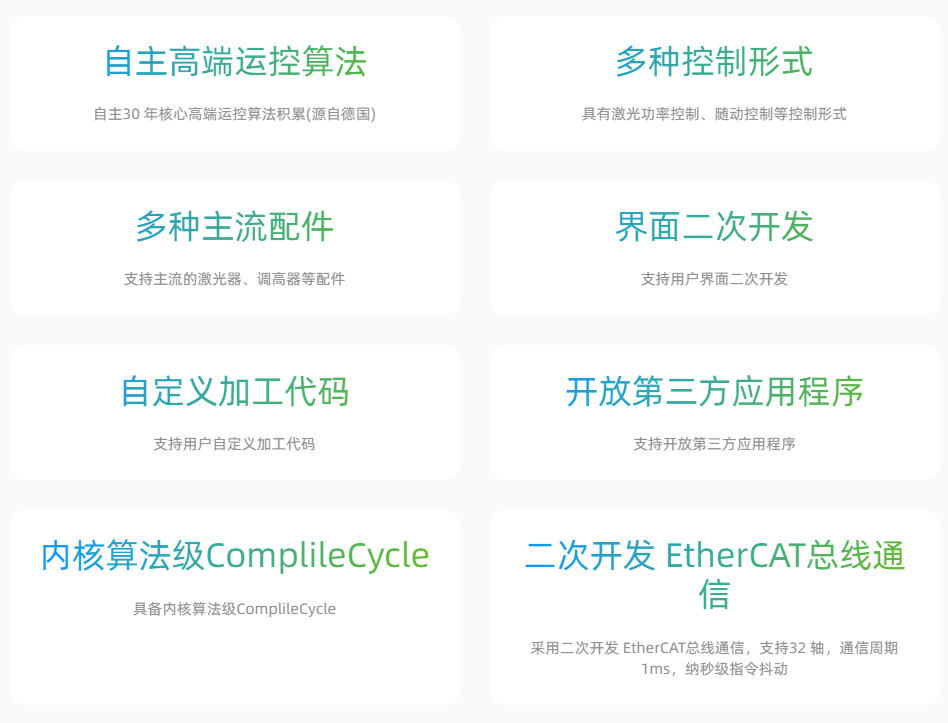 匯川激光數(shù)控系統(tǒng)基于德國PA系統(tǒng)30年高端數(shù)控算法和機(jī)床工藝積累,采用開放X86架構(gòu)、微秒級(jí)Windows實(shí)時(shí)系統(tǒng)、主流純軟EtherCAT通信,搭載Intel? 6 th Core ? i5 桌面級(jí)多核處理器、Q170 工業(yè)級(jí)芯片,可支撐強(qiáng)算力處理。提供豐富易用的二次開發(fā)平臺(tái),自主開發(fā)工藝算法方案,打造自主知識(shí)產(chǎn)權(quán)的“差異化競爭力”。具備高速高精、蛙隨一體、功率控制、4軸RTCP以及龍門主從雙驅(qū)控制方案等數(shù)控算法,與匯川旗下產(chǎn)品深度融合,形成激光行業(yè)解決方案。